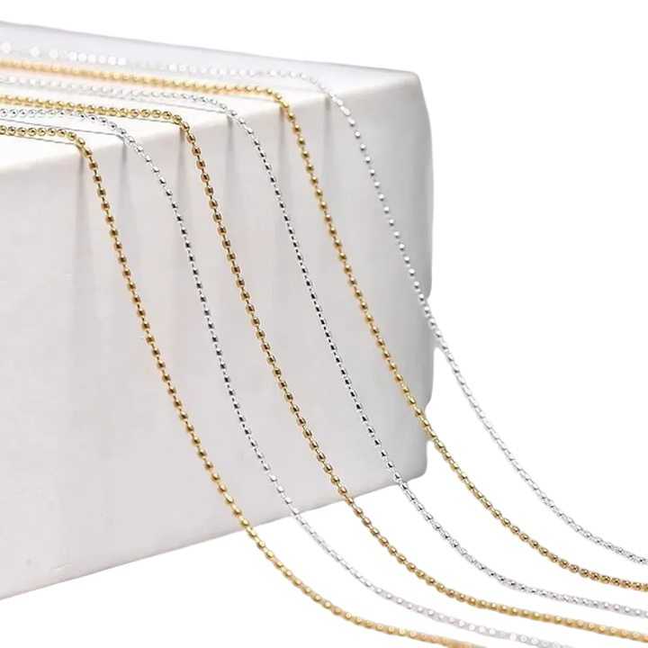 1 meter mini kralen 0,8 mm voor nagels, tanden, glas, telefoon en meer. Metalen bolletjes in ketting voor eenvoudige applicatie en brede toepassing. Volledige beschrijving