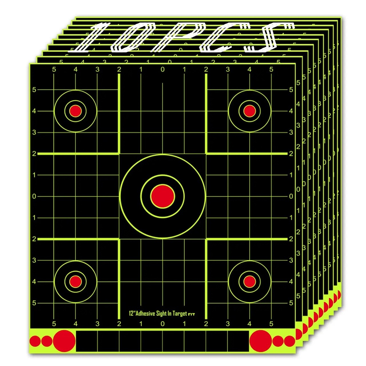 10 stuks Reflexieve zelfklevende doelen 30,5 x 33 cm 12 x 12 inch Vierkante schietdoelen met spettereffect Fosforgeel doelpunt