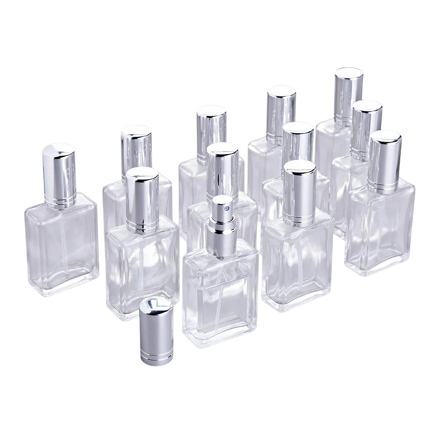 De set glazen flesjes van 15 ml is bedoeld voor het bewaren en aanbrengen van parfums of andere vloeistoffen. Elk flesje is uitgerust met een spray, die een gelijkmatige aanbrenging van de inhoud mogelijk maakt. Dankzij het praktische volume zijn de flesjes geschikt voor dagelijks gebruik en om mee te nemen. Bij de set zijn ook hulpmiddelen voor eenvoudig vullen inbegrepen, namelijk trechters en pipetten. De glazen uitvoering maakt controle van de hoeveelheid vloeistof binnenin mogelijk.