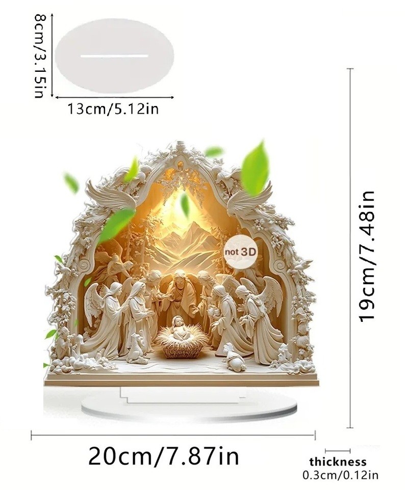 Startpagina Startpagina Huis en huishouden Decoraties en woonaccessoires Kleine decoraties 2D acryl kerststal 20 x 19 cm Decoratie met standaard Geboorte van Jezus Engelen Maria Jozef Drie koningen Tafeldecoratie