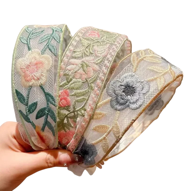 Deze set van drie geborduurde haarbanden met kanten bloemen is een elegante aanvulling die je kapsel een fijne romantische uitstraling geeft. De gedetailleerde kanten afwerking heeft een zeer vrouwelijke en verfijnde indruk, waardoor de haarbanden geschikt zijn voor zowel feestelijke als dagelijkse draag. Fijne bloemmotieven complementeren prachtig loshangend haar en verzorgde kapsels. De lichte constructie zorgt voor comfortabel dragen zonder onaangename druk. Haarbanden zijn de ideale keuze voor vrouwen die snel een elegante styling willen creëren.