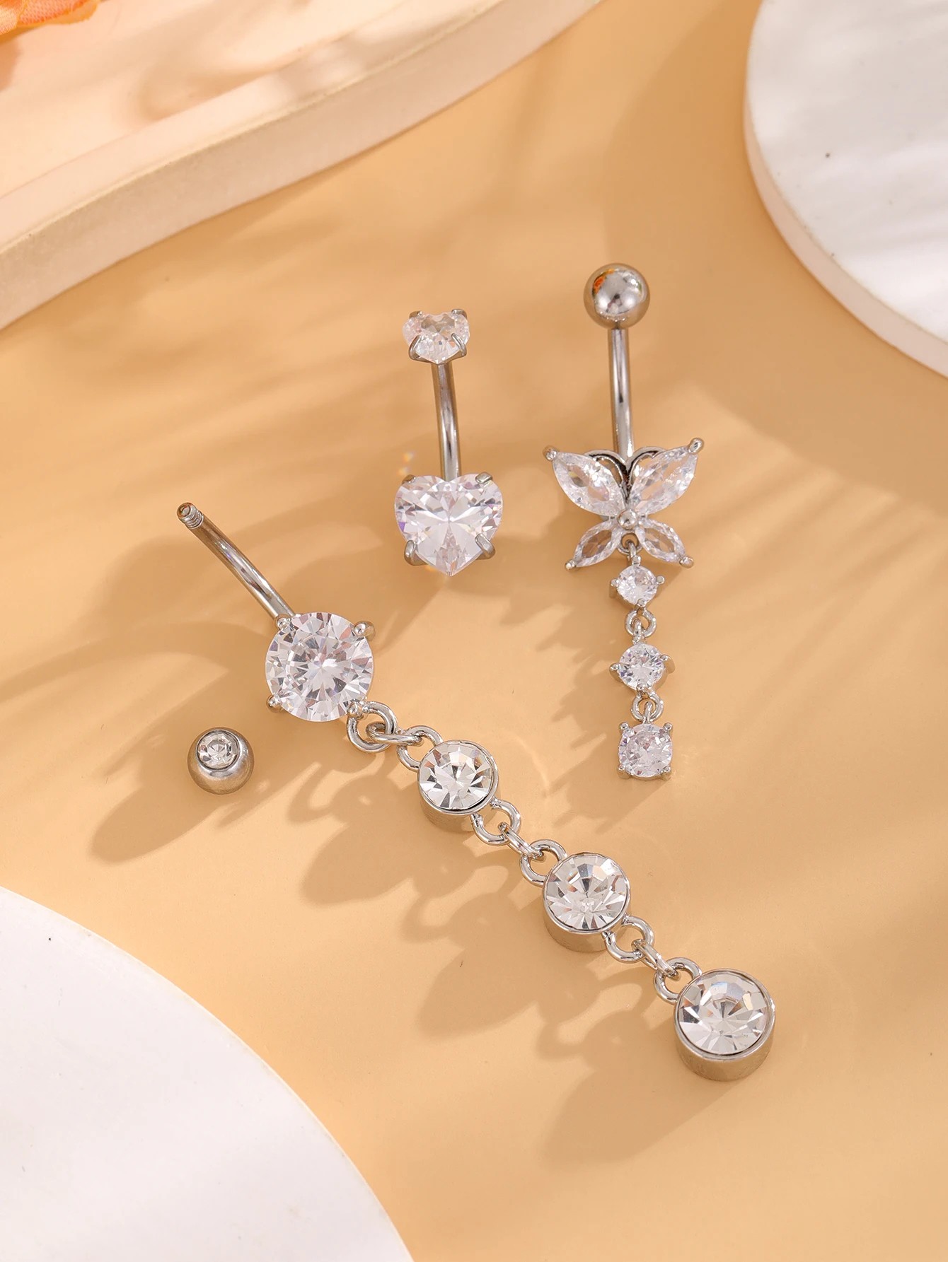 Startpagina Startpagina Sieraden en horloges Piercings 3 stuks piercing van roestvrij staal Zilveren uitvoering Diamanten met hart en vlinder Elegante set lichaams sieraden