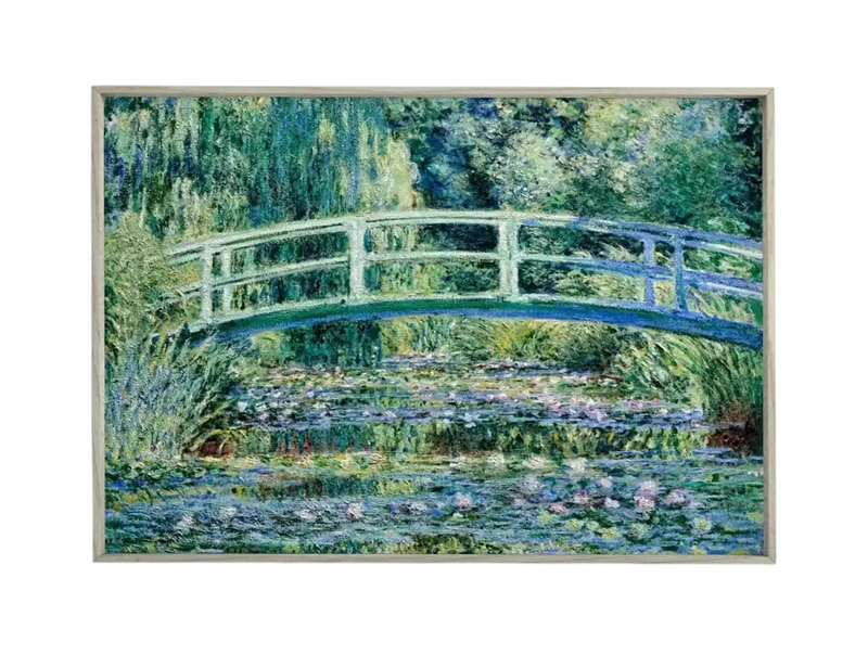Startpagina Startpagina Huis en huishouden Decoraties en woonaccessoires Fotolijsten en schilderijen Afbeeldingsposter voor de muur 50 x 70 cm Levendige vijver met Japanse brug Monet inspiratie Doek zonder lijst Impressionisme