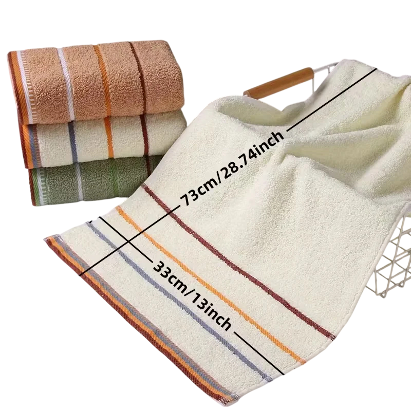 Met afmetingen van 33 x 73 cm is de handdoek groot genoeg voor comfortabel afdrogen, maar toch compact en gemakkelijk op te bergen in de badkamer. Dankzij de combinatie van materialen behoudt hij zijn vorm, zelfs na frequent wassen en langdurig gebruik. Zijn zachte textuur garandeert een aangenaam gevoel bij de dagelijkse lichaamsverzorging.