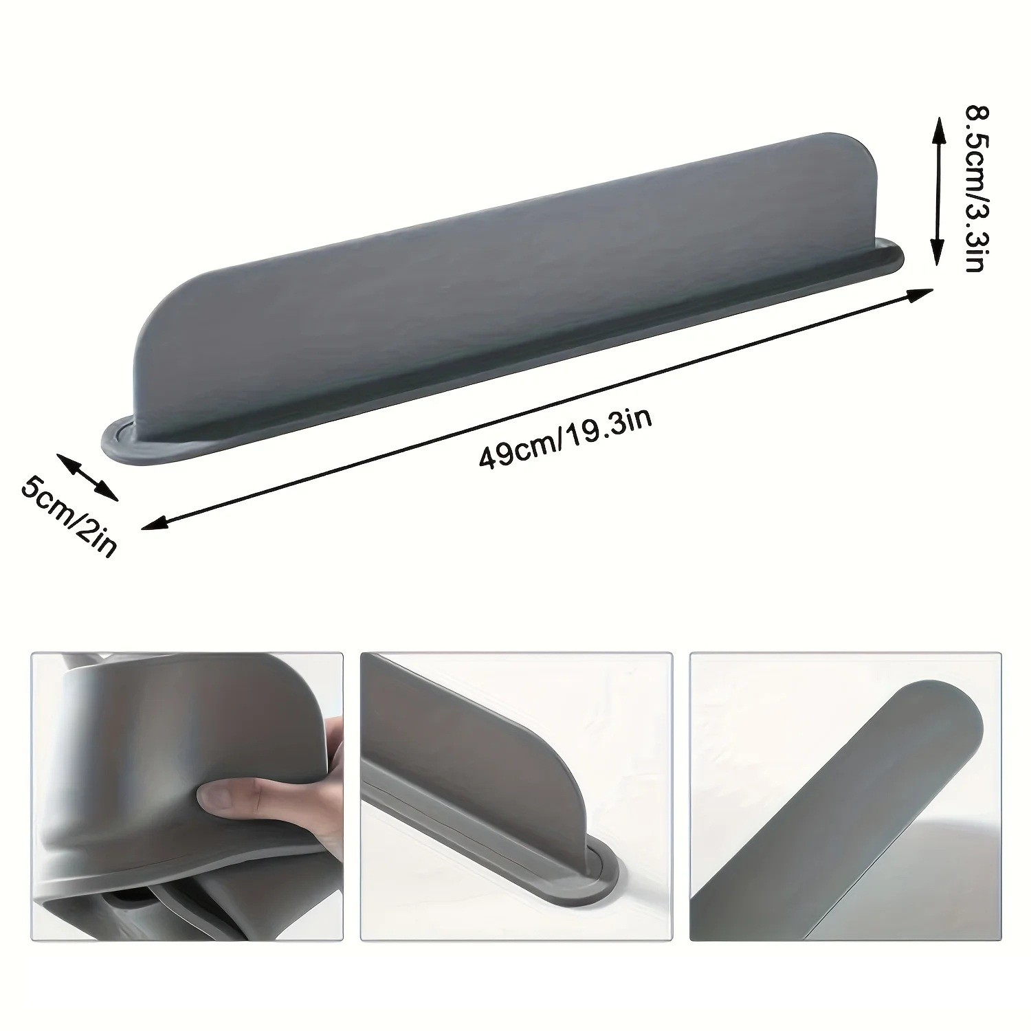 Het gebruik is eenvoudig – leg de strip op de rand van de wastafel of het werkblad en druk licht aan, zodat de zuignappen stevig hechten. Na gebruik kan de barrière eenvoudig worden verwijderd en schoongemaakt. Vermijd hoge temperaturen, scherpe voorwerpen en overmatige belasting.