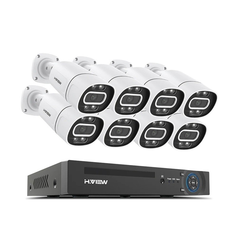 Het systeem bevat totaal 8 beveiligingscamera's, die op verschillende plaatsen van het object kunnen worden geplaatst. Hierdoor kunnen meerdere delen van het gebouw of terrein tegelijkertijd worden gemonitord. De camera's zijn verbonden met de opname-eenheid, die dient voor het opslaan van beeldopnames van alle camera's.