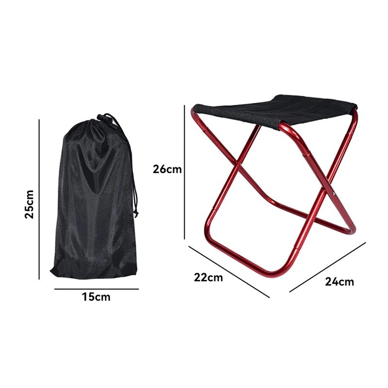Buiten opvouwbare campingstoel 26 x 24 x 22 cm Draagbare mini-stoel met stoffen hoes 25 x 15 cm Aluminiumlegering stoeltje