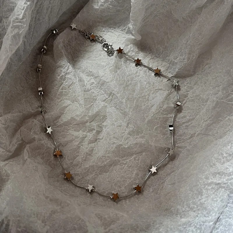 Choker van chirurgisch staal Met geïntegreerde kleine sterren Verstelbare lengte Combinabele minimalistische damesketting