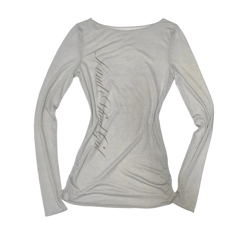 Dit dames T-shirt met lange mouwen is ontworpen voor vrouwen die stijl, comfort en elegantie in één willen combineren. Dankzij de strakke snit sluit het perfect aan op het lichaam en benadrukt het vrouwelijke rondingen. Het zachte, elastische materiaal past zich aan het lichaam aan en biedt de hele dag comfort. Op de achterkant zit een discrete maar opvallende print in scriptstijl, wat het T-shirt een originele look geeft. Dit model past perfect bij jeans, broeken en rokken - of je nu naar kantoor gaat, naar een vergadering of gewoon uitgaat.