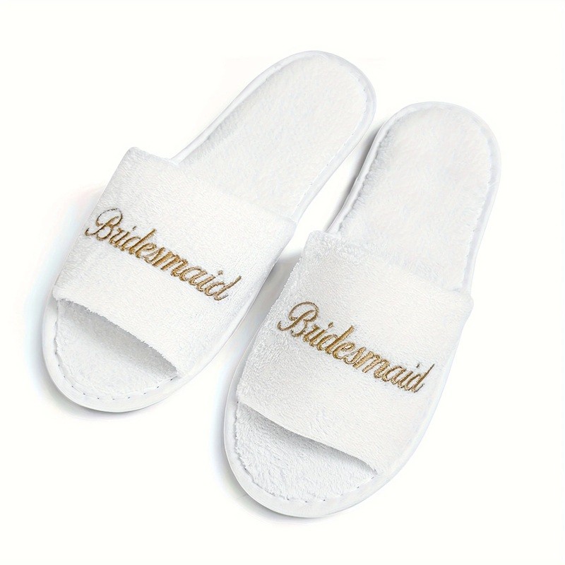 Comfortabele pantoffels met borduursel voor de draagster, ideaal voor het vrijgezellenfeest, huwelijksvoorbereidingen en gezamenlijke fotosessies. Volledige beschrijving