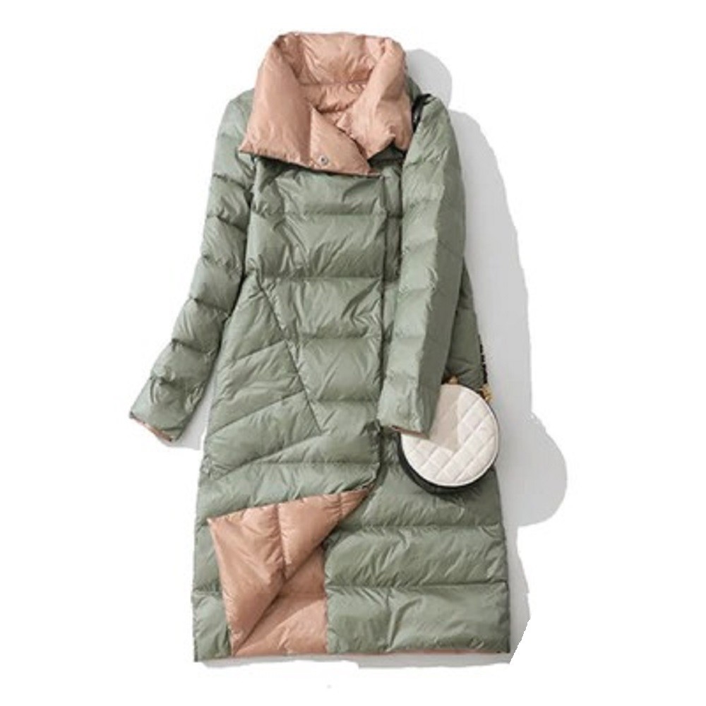 Dames lange gewatteerde jas omkeerbaar