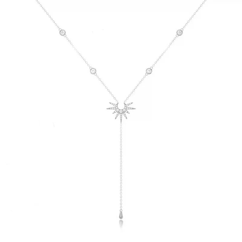 Dames lange kettinghalsketting Druppel hanger Zirkon Zon Eenvoudige metalen choker Halsketting met hangende ketting