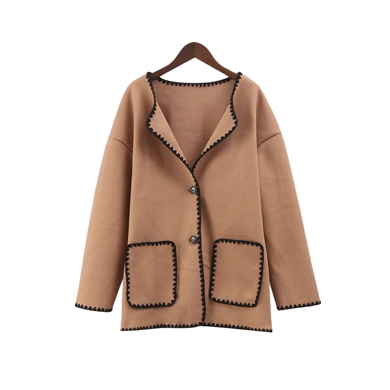 • Conclusie: Een lentejas voor dames met knopen en zwarte biezen is een investering voor de lange termijn. Door de veelzijdigheid van dit item kunt u het in verschillende situaties dragen en het zal u in veel lente-seizoenen goed van pas komen.