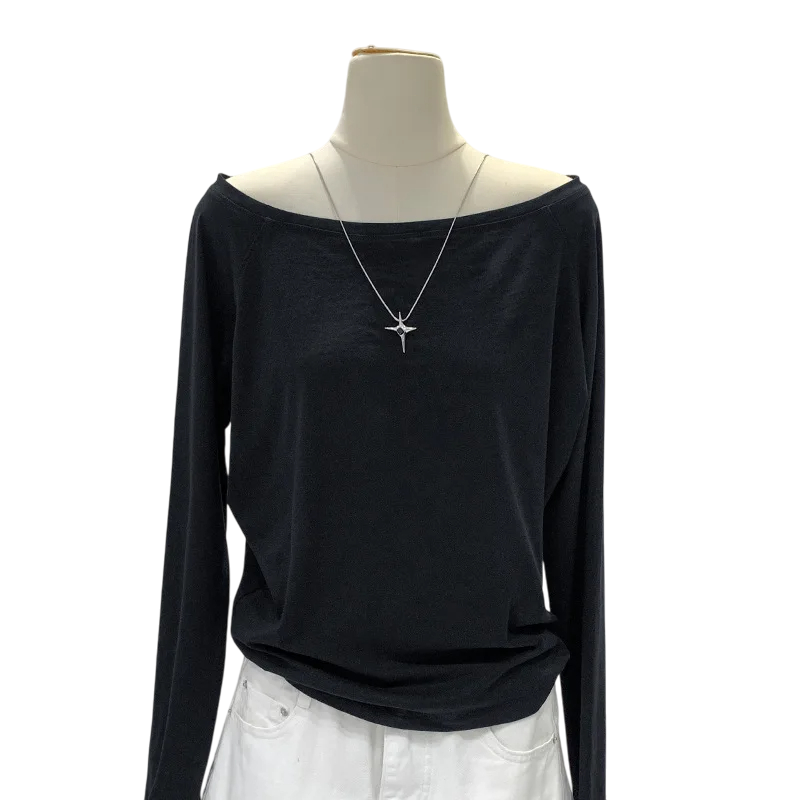 Dames T-shirt met boothals Asymmetrische losse pasvorm Eenvoudig minimalistisch ontwerp Lange mouwen Zacht comfortabel materiaal