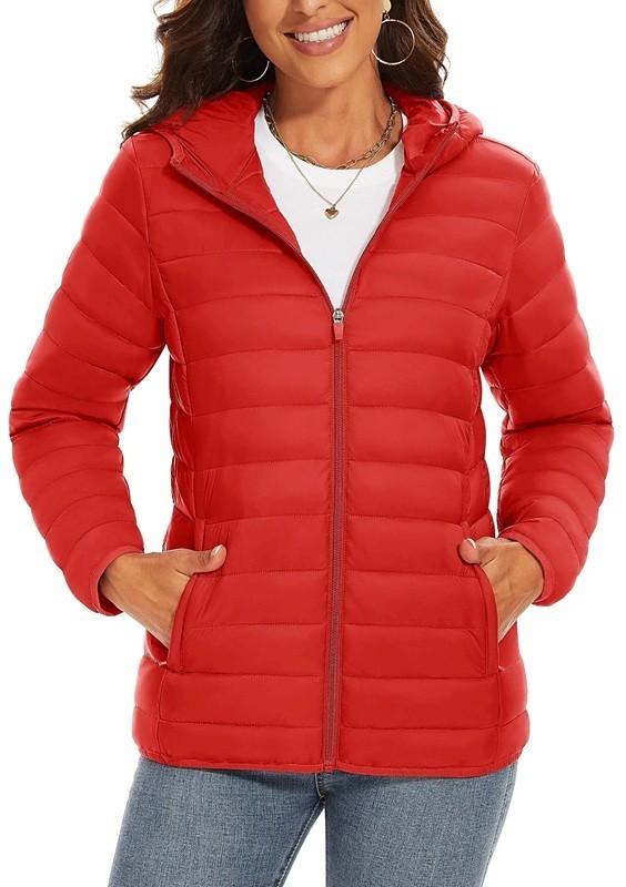 Dames winterjas met capuchon Gevoerde jas met rits Warme jas met zakken Lichte gewatteerde jas voor de stad Stijlvolle snit voor koud weer