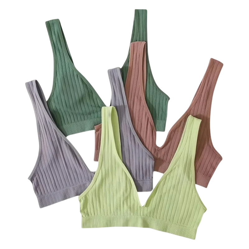 Damesbh zonder sluiting met geribbeld patroon elastaan nylon rekbaar materiaal voor comfortabel dragen en lichte ondersteuning