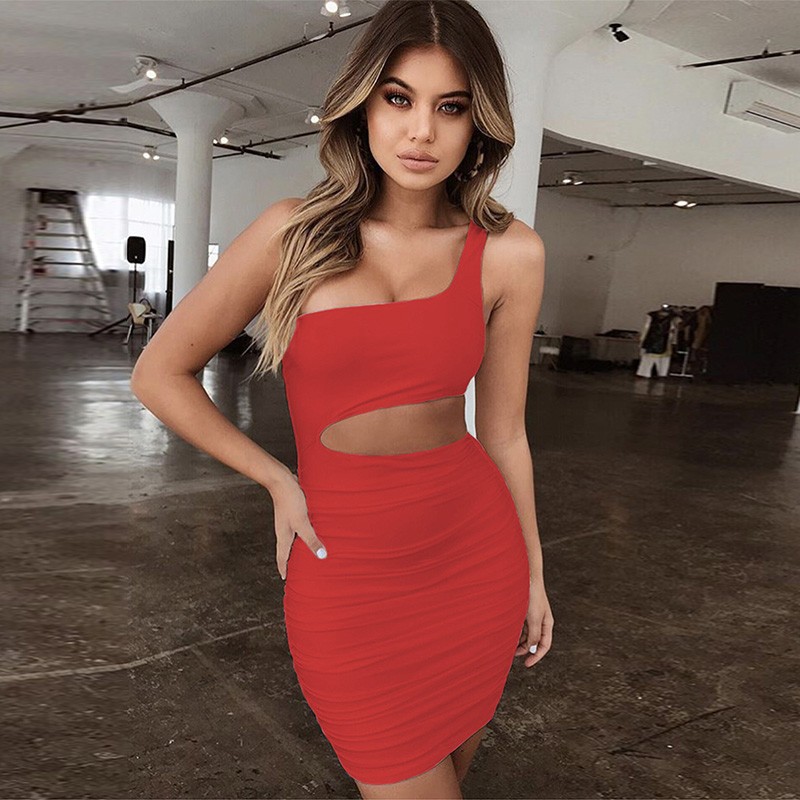 Verleidelijke mini-jurk met één schouder.