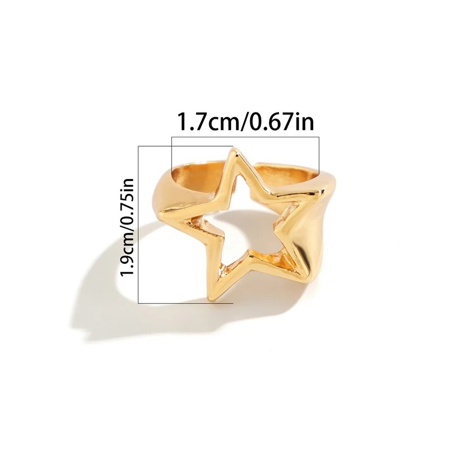 Damesring 1,9 x 1,7 cm Verstelbare maat Holle ster Zinklegering Stijlvolle modejuweel Elegante ring voor dagelijks gebruik