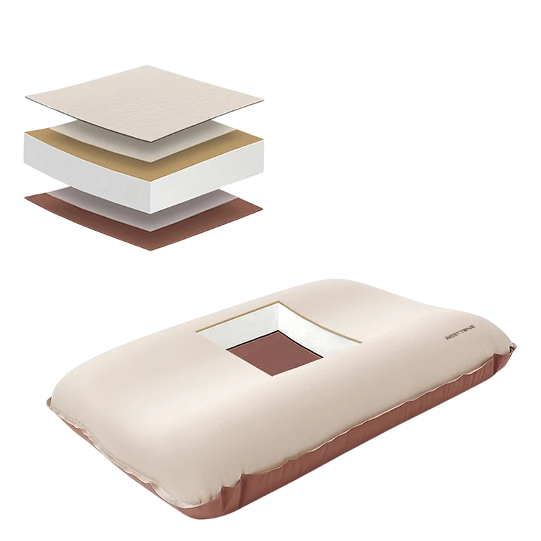 - Zelfopblazend mechanisme – het kussen blaast zichzelf op binnen enkele seconden zonder dat je hoeft te pompen