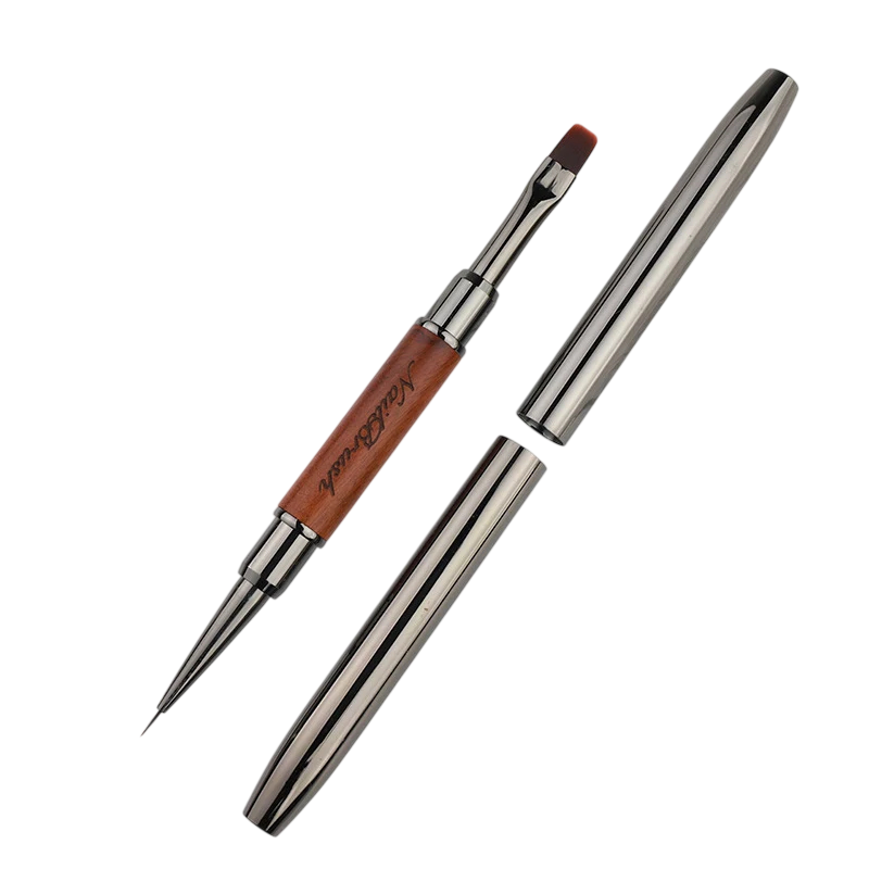 Dubbelzijdige borstel voor nagelmodellering en schilderen met beschermhoes. Ideaal voor acryl, gel, lak en precisieafwerking van nagels. Volledige beschrijving