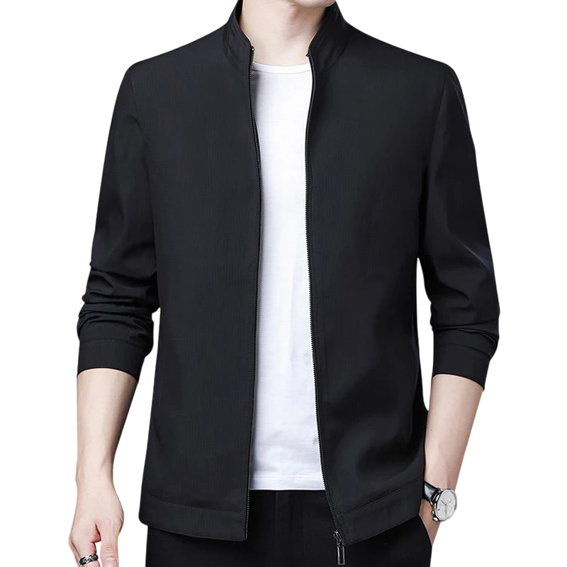 Startpagina Startpagina Kleding en accessoires Herenkleding Heren jassen en mantels Heren voorjaars- en najaarsjassen Elegante herenjas met rits Lichtgewicht overgangsjas met lange mouwen Stijlvol recht jack met opstaande kraag voor dagelijks gebruik in de stad
