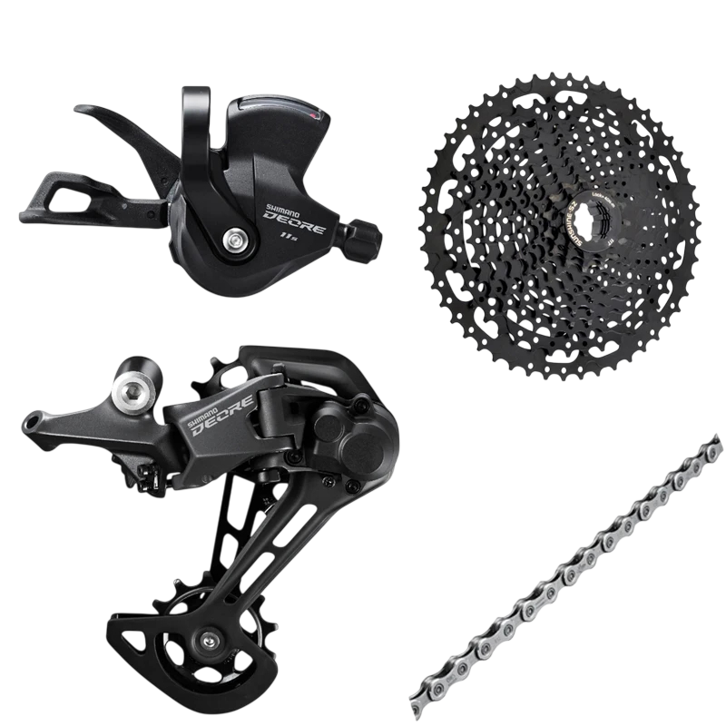 Deze fietsset is ontworpen voor fietsen met 11 versnellingen en bevat essentiële componenten voor een complete aandrijving. Dankzij de cassette met een bereik van 11–50T biedt het brede mogelijkheden voor versnellingen, wat vooral nuttig is bij het fietsen in heuvelachtig of technisch uitdagend terrein. De aluminium constructie zorgt voor voldoende sterkte en duurzaamheid bij regelmatig gebruik. De set is vooral geschikt voor mountainbikes, waar betrouwbare en nauwkeurige schakeling vereist is. De afzonderlijke onderdelen zijn afgestemd op gezamenlijke functionaliteit.