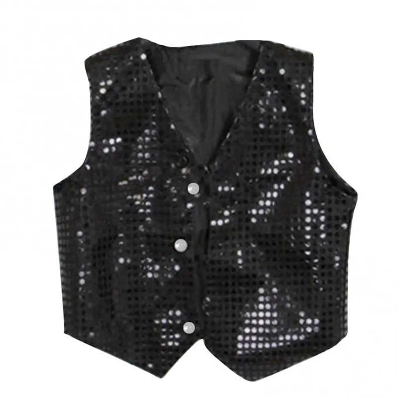 Stijlvolle flonkerende vest voor jongens en meisjes, ideaal voor street dance, hip-hop en dansoptredens. Comfortabele pasvorm en glanzend ontwerp voor elke uitvoering. Volledige beschrijving