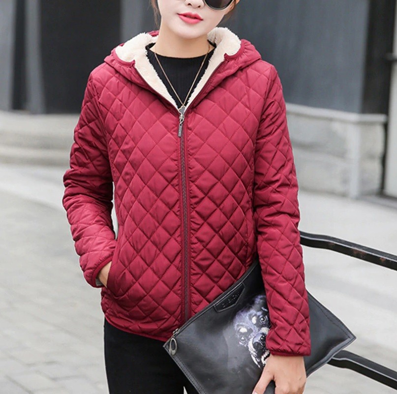 In deze gewatteerde damesjas heb je het gegarandeerd warm.