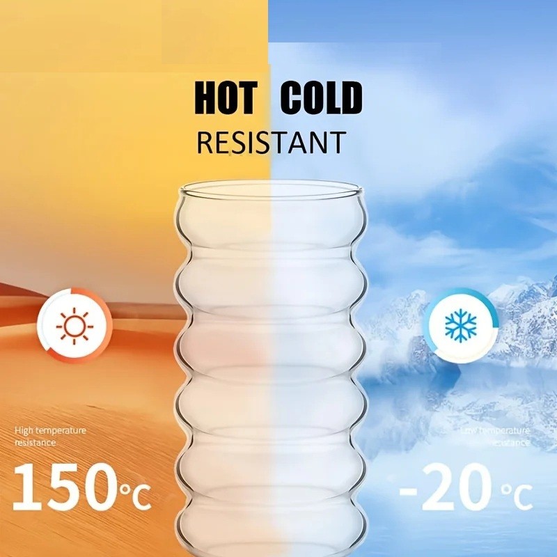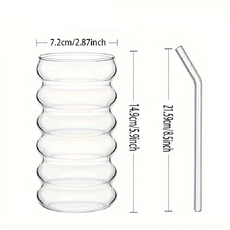 Glas met rietje 500 ml 7,2 x 14,9 cm Geribbelde golfglas voor dranken met glazen rietje 21,59 cm Herbruikbaar glas