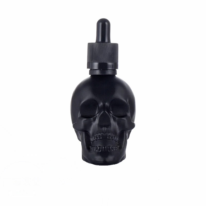 Glazen schedel flesje met pipet 30 ml zwarte glazen pot voor het bewaren en doseren van oliën, serums en cosmetische vloeistoffen