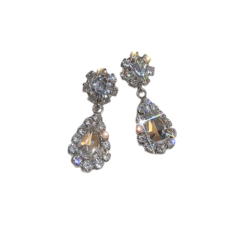 Elegante stenen set met geometrische druppels verlicht elke bruiloft of feestoutfit, een ideaal cadeau voor een jubileum, verloving of verjaardag. Volledige beschrijving