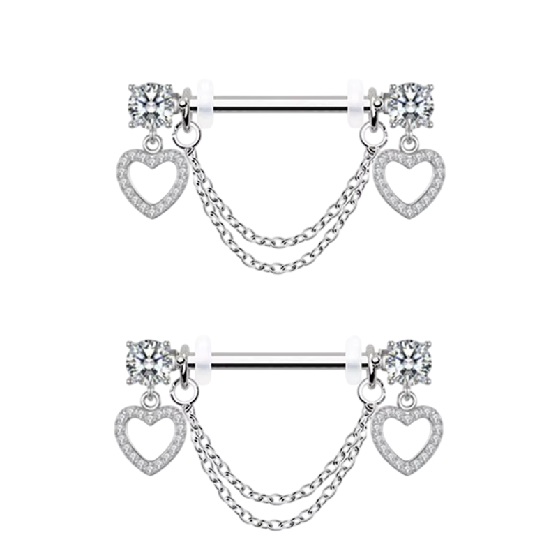 Glanzend paar sieraden voor tepels met hartvormig motief in maat 1,6 mm biedt fijne romantiek, vrouwelijke stijl en een elegante lichaamsaccessoire. Volledige beschrijving