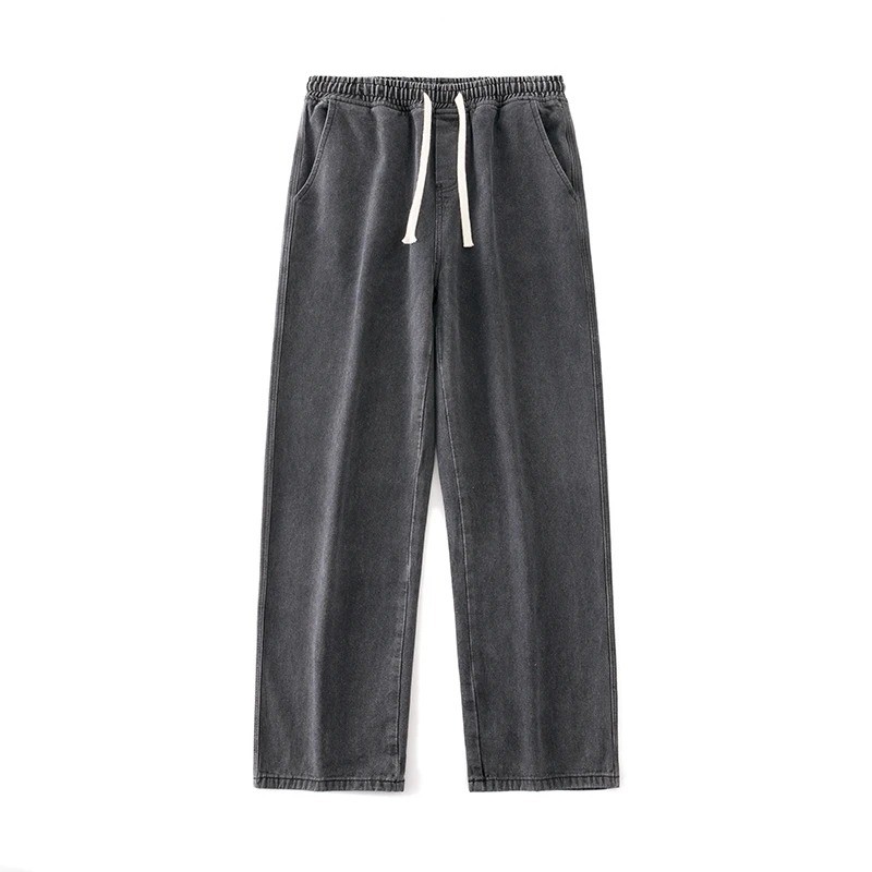 Stijlvolle losse heren jeans met zakken en koord, gemaakt van katoen en polyester. Een comfortabel en modern stuk voor dagelijks gebruik. Volledige beschrijving