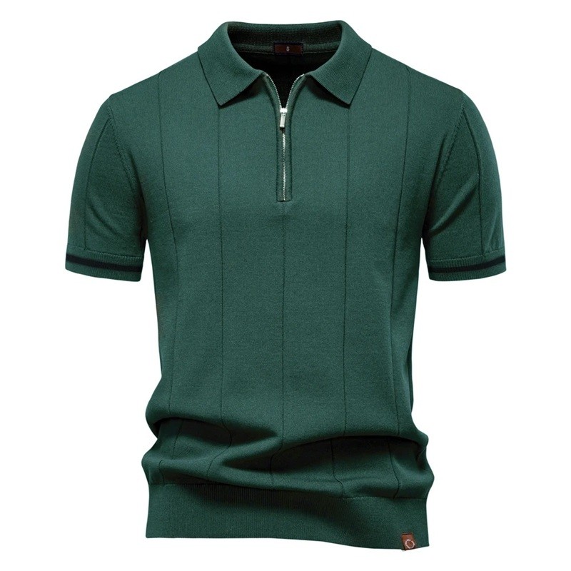 Startpagina Startpagina Kleding en accessoires Herenkleding Heren T-shirts Heren T-shirts met korte mouw Heren polo met rits en V-hals en kraag Korte mouw Effen Polyester Viscose Elegante stijl