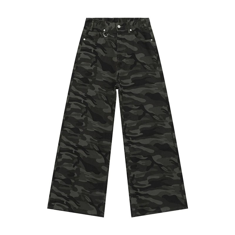 Startpagina Startpagina Kleding en accessoires Herenkleding Heren broeken Heren Rechte camouflagebroek Losse wijde pijpen Comfortabele outdoorbroek Casual stijl Luchtige legerbroek