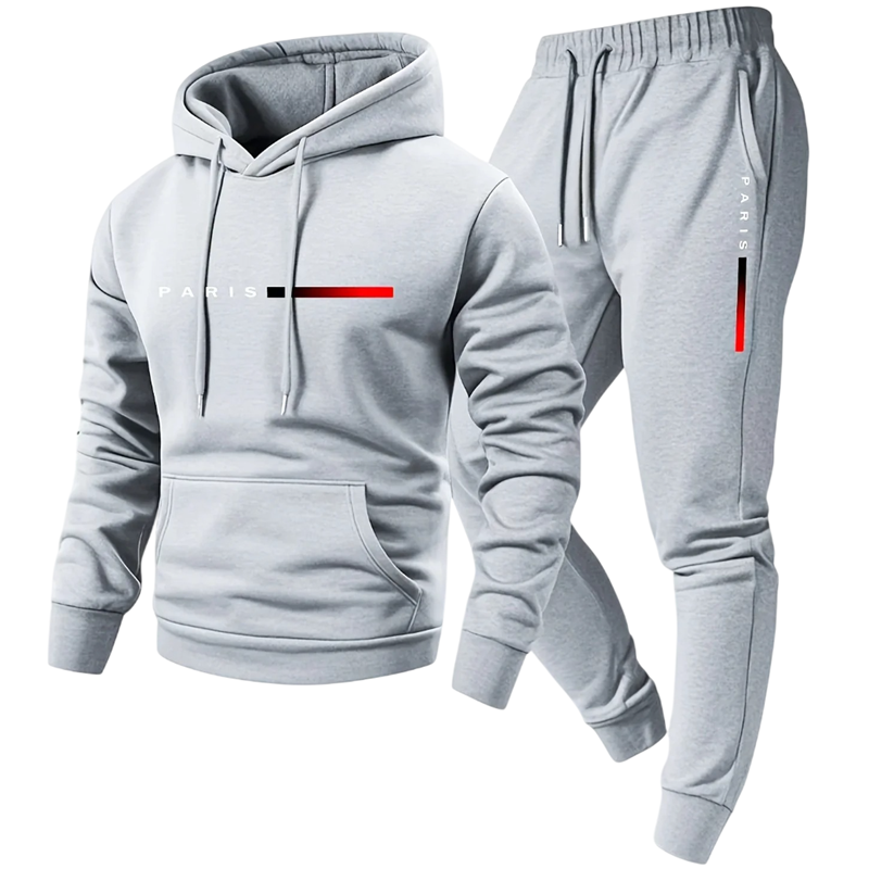 Heren set met hoodie en joggers met print Paris, gemaakt van polyester. Comfortabele en stijlvolle set voor dagelijks gebruik. Volledige beschrijving