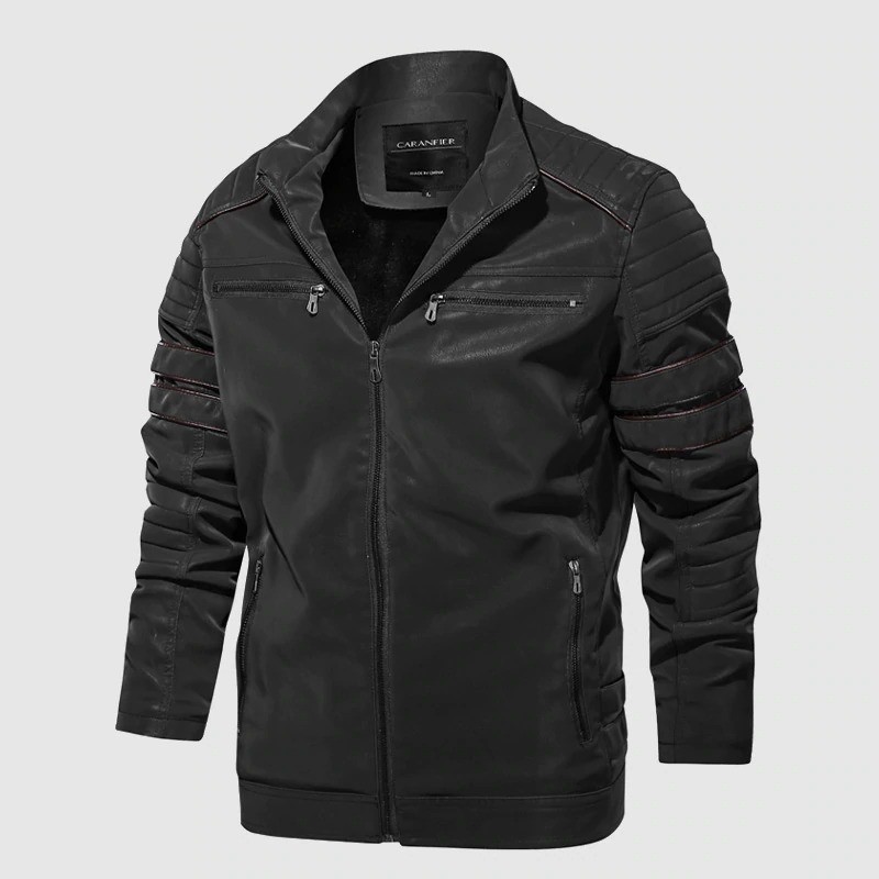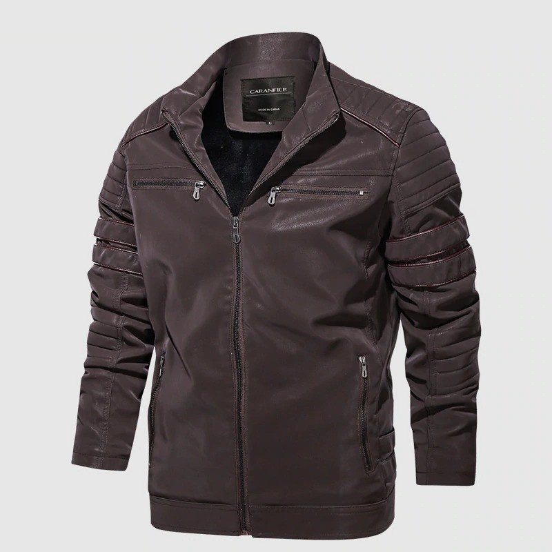 Heren winter leren jas met kraag