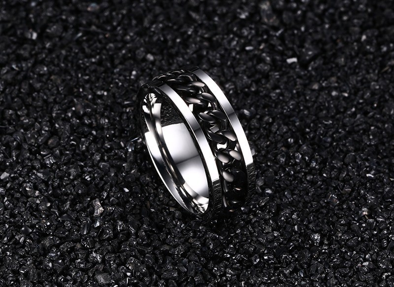Een herenring met ketting is een heel modieus punkaccessoire.
