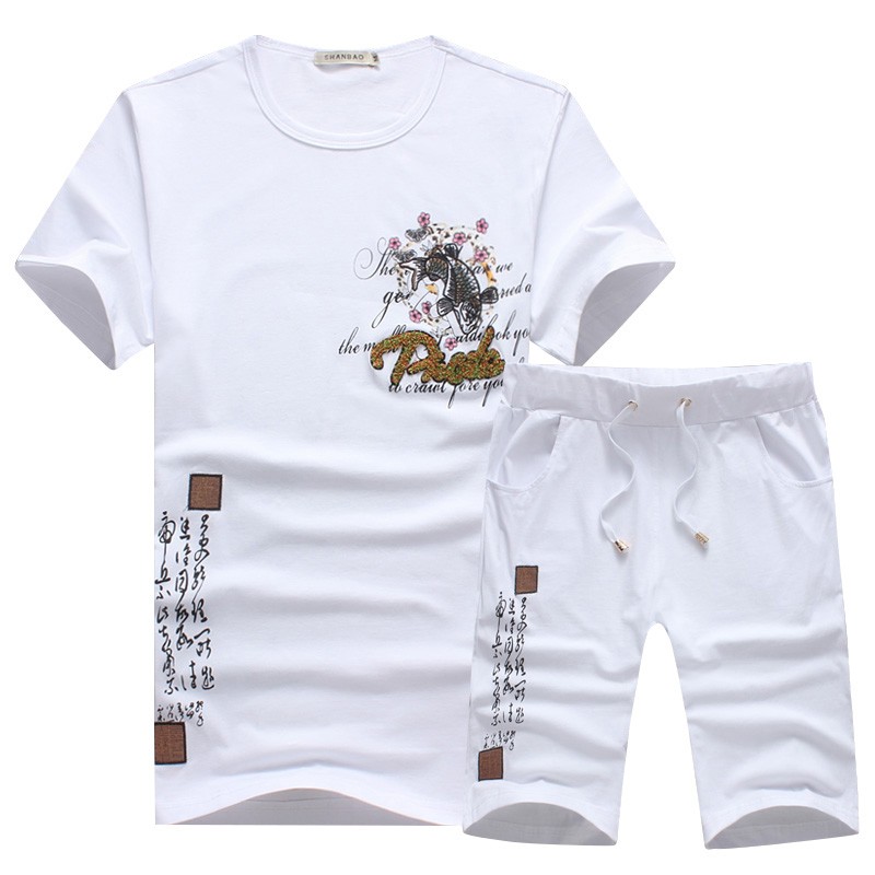 Startpagina Startpagina Kleding en accessoires Herenkleding Heren T-shirts Heren T-shirts met korte mouw Herenset - T-shirt met vissenprint en korte broek J1561
