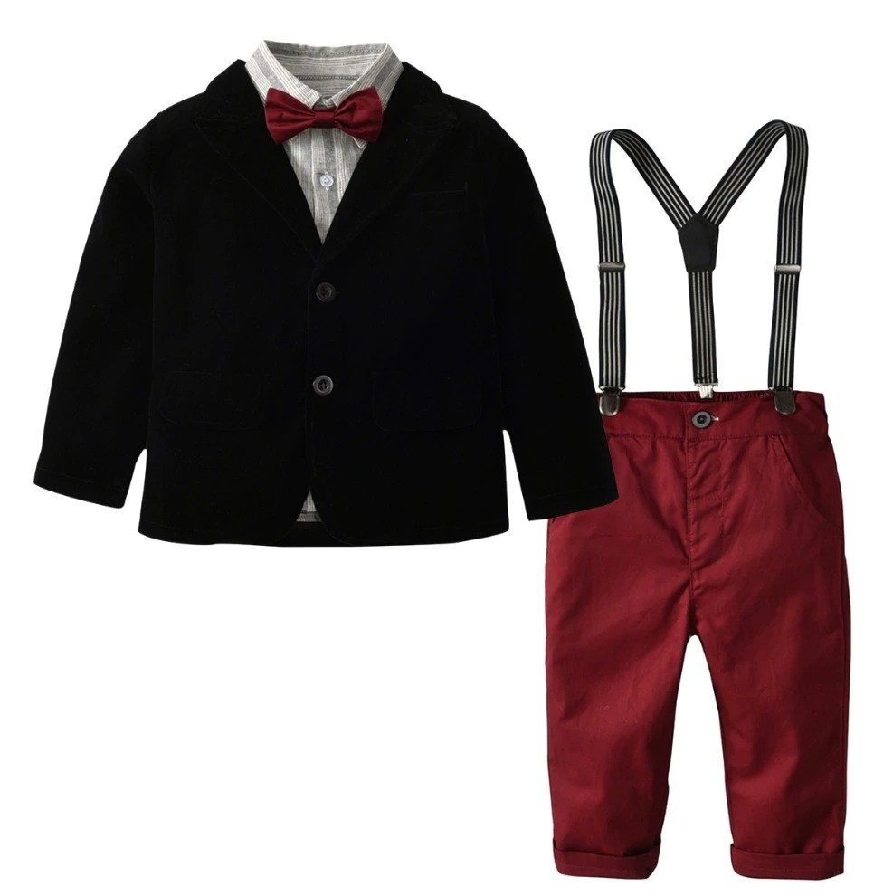 Pakketinhoud: 1x jas, 1x shirt, 1x broek, 1x vlinderdas, 1x bretels