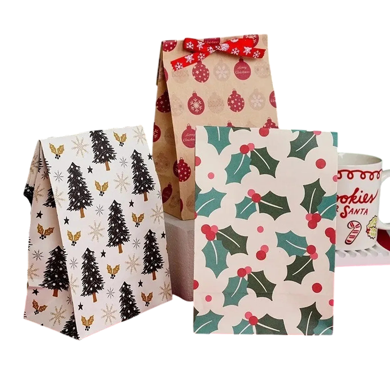 Deze cadeauzakjes combineren kwaliteit, esthetiek en ecologie. Stevig kraftkarton garandeert duurzaamheid en een elegante uitstraling, terwijl retro kerstmotieven elke cadeau een uniek charme geven. Stickers voegen een praktisch en decoratief element toe, waardoor het zakje gemakkelijk kan worden gesloten en versierd.