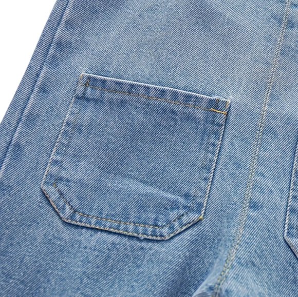 Praktische zakjes geven de overall een functioneel en modieus element dat zowel kinderen als ouders zullen waarderen. Jeansontwerp en universele snit garanderen dat deze overall past bij elk T-shirt of sweatshirt. Dankzij comfortabel materiaal, nauwkeurige afwerking, unisex stijl, eenvoudig onderhoud en elegante uitstraling zal het een favoriet stuk worden in de garderobe van elk klein kind.