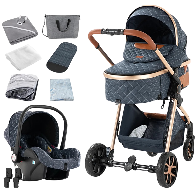 Kinderwagen 3-in-1 met hoge terreinafstemming en opvouwen met één hand, katoen, combinatie van wieg en autostoel voor reizen