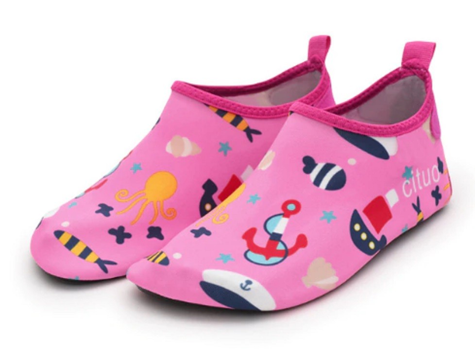 De schoenen zijn geschikt om mee te zwemmen, sporten of je eerste stapjes te zetten.