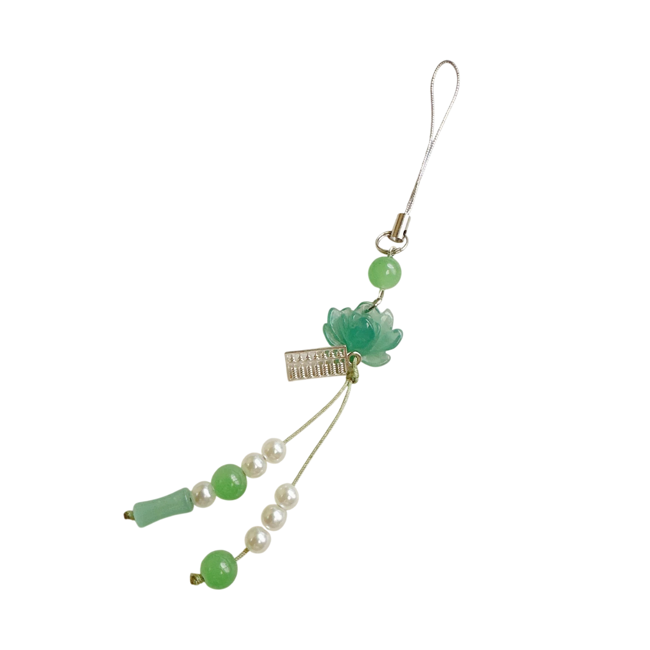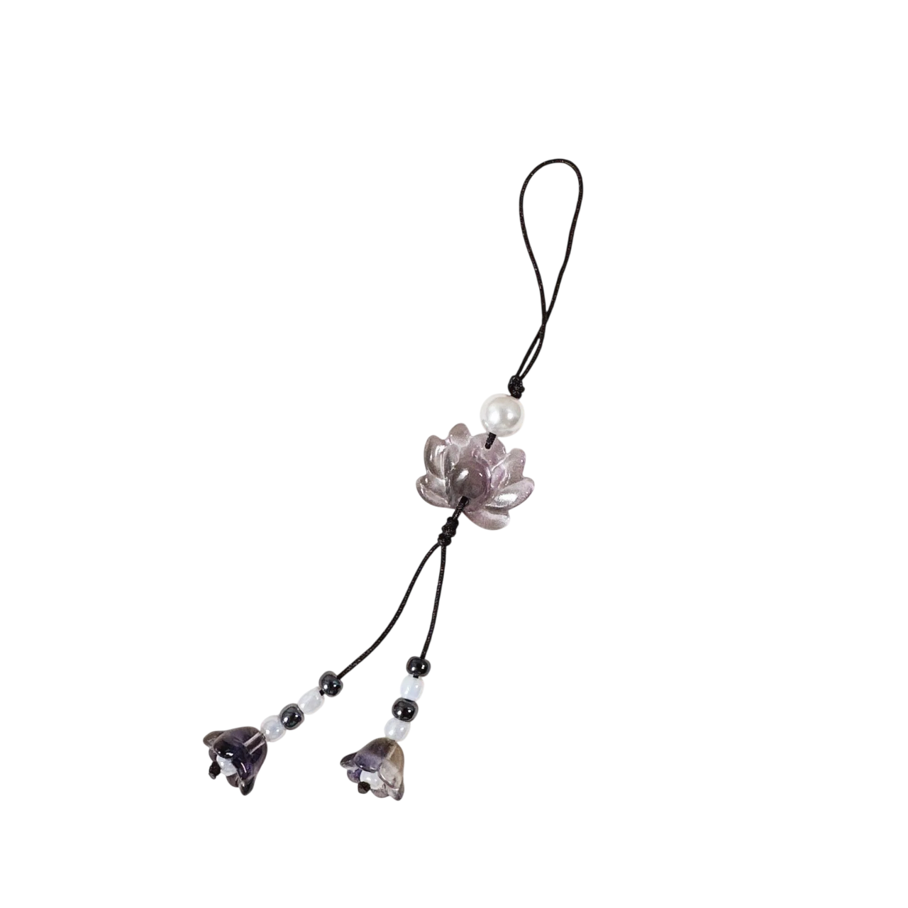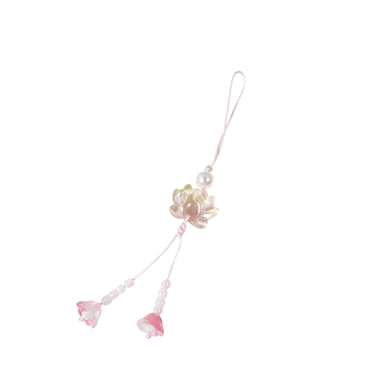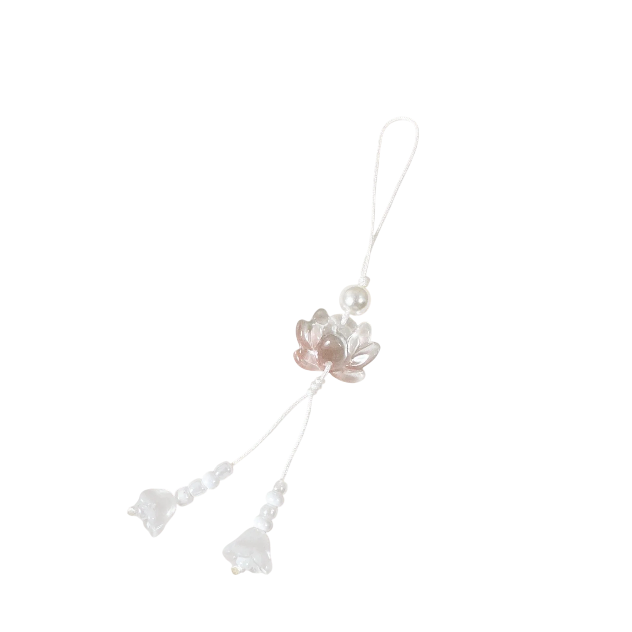 Elegante kralenhanger met lotusmotief van hars. Stijlvolle versiering voor sleutels, tas en rugzak. Volledige beschrijving