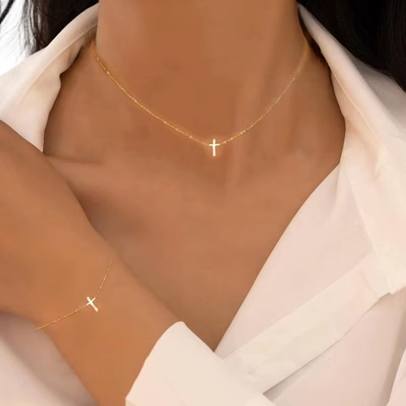 Startpagina Startpagina Sieraden en horloges Dames sieraden en horloges Dameskettingen en -halskettingen Kruisset ketting 45.5+5 cm en armband 19+5.5 cm Modieuze casual sieraden voor vrouwen Elegante cadeau Fijne kruisset