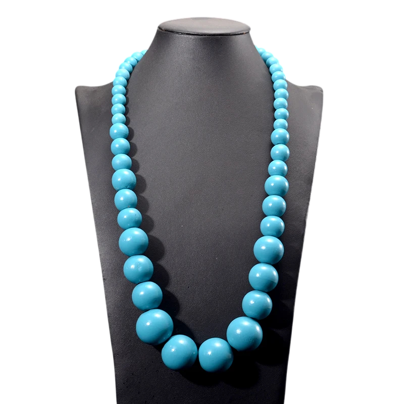 Houten ketting met ronde kralen in verschillende maten. Lengte 37 cm en opvallende kleur voor het aanvullen van een dagelijkse outfit. Volledige beschrijving