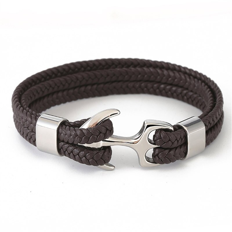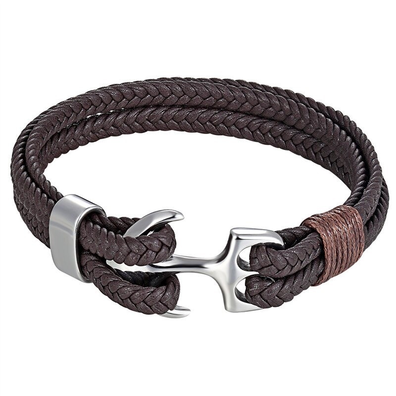Leren armband met anker