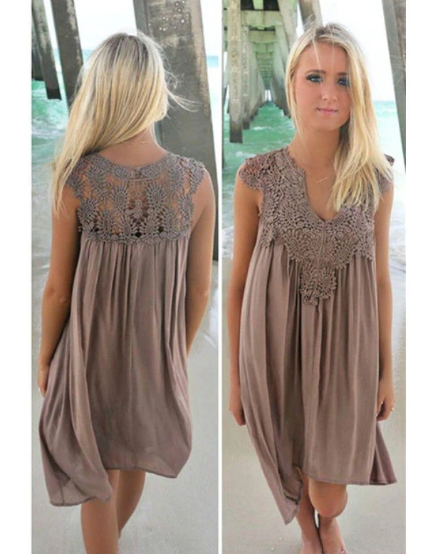 Losse zomerjurkjes versierd met kant zijn perfect voor het strand.