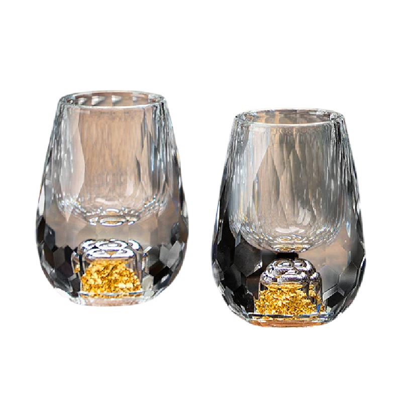 Startpagina Startpagina Huis en huishouden Voor de keuken Tafelaccessoires Glazen Luxe kristallen shotglaasje 15 ml 3 x 6 x 2,5 cm Diamant slijpsel Gouden decoratie 24K folie Cadeauglaasje voor alcohol